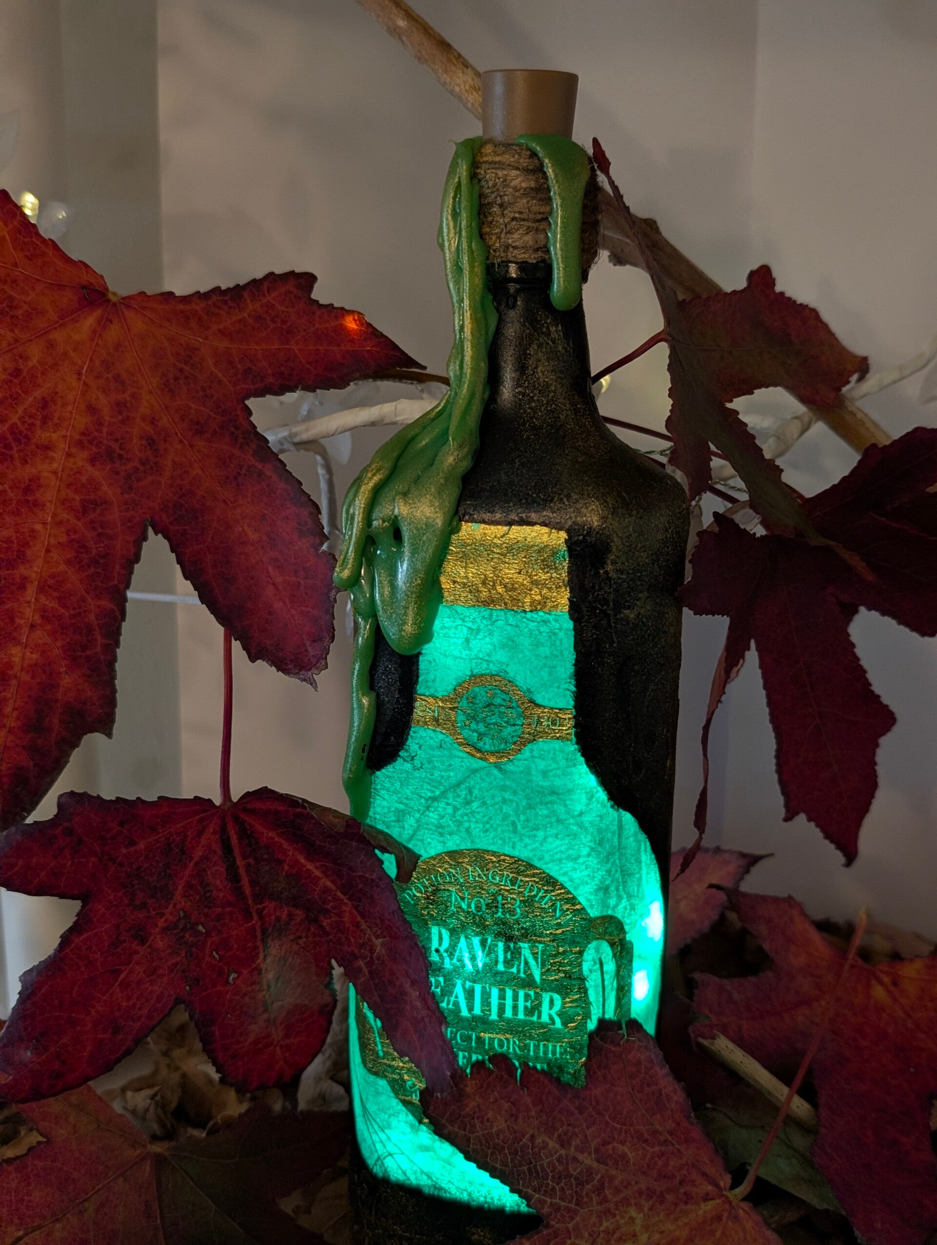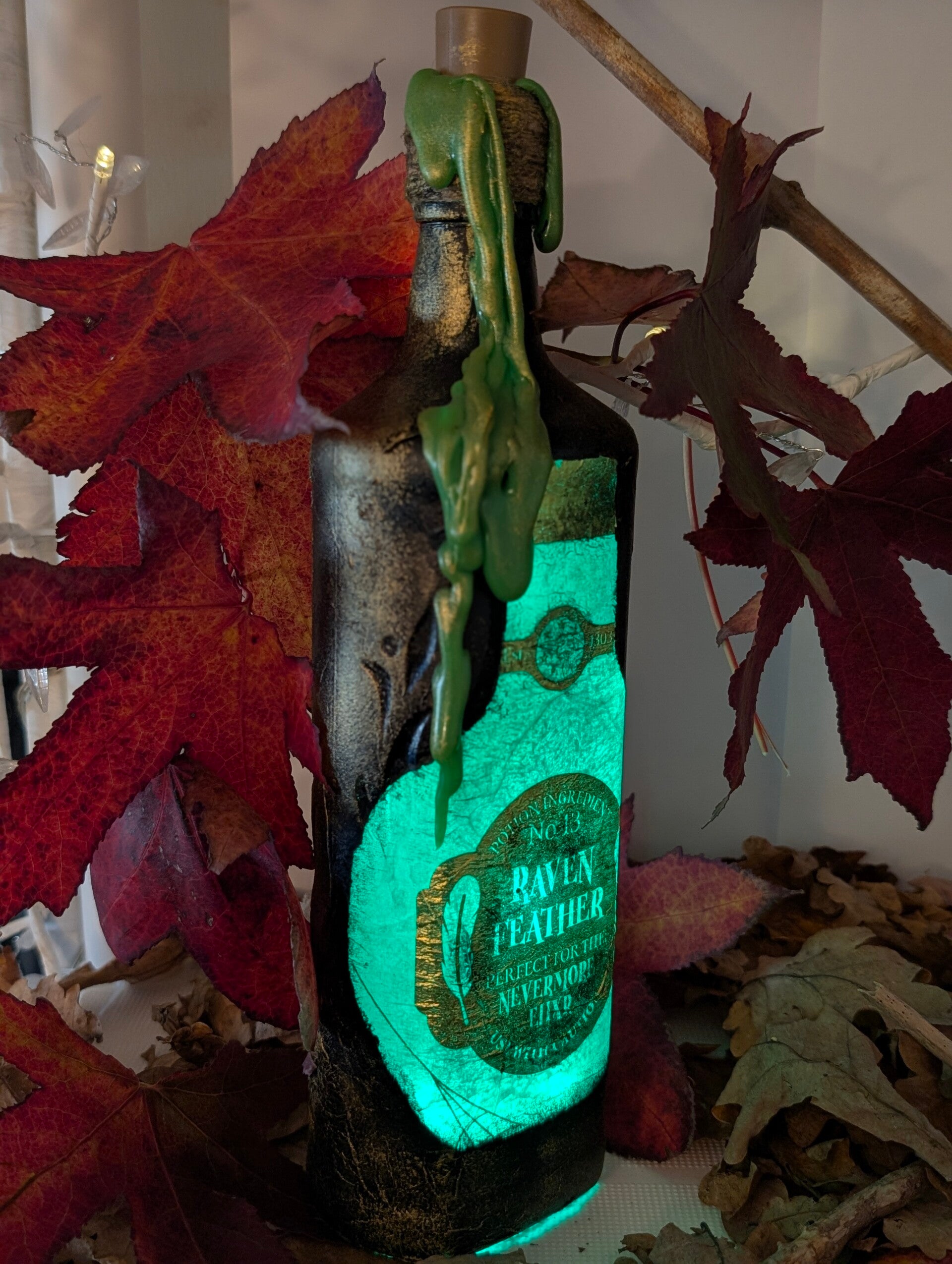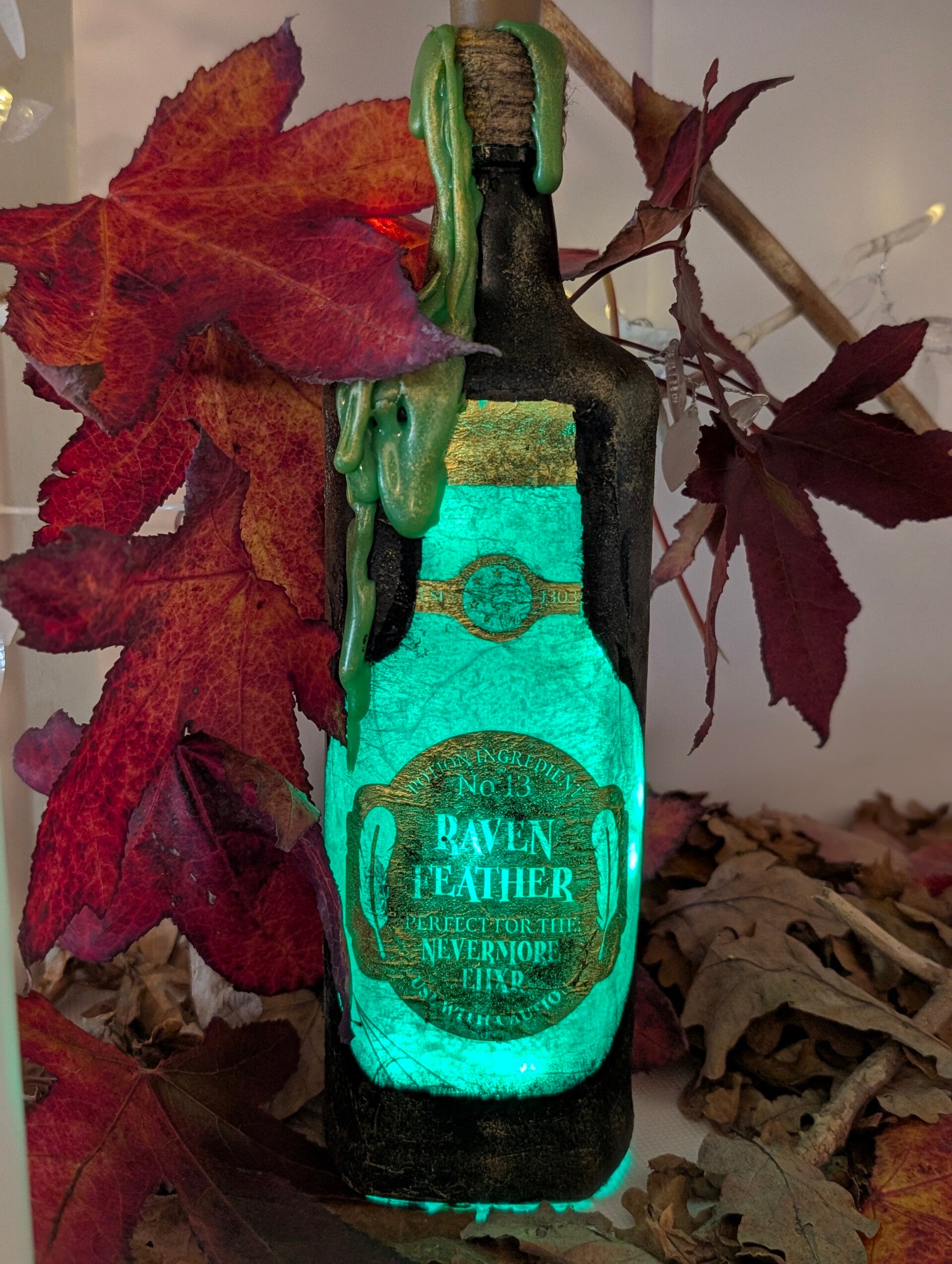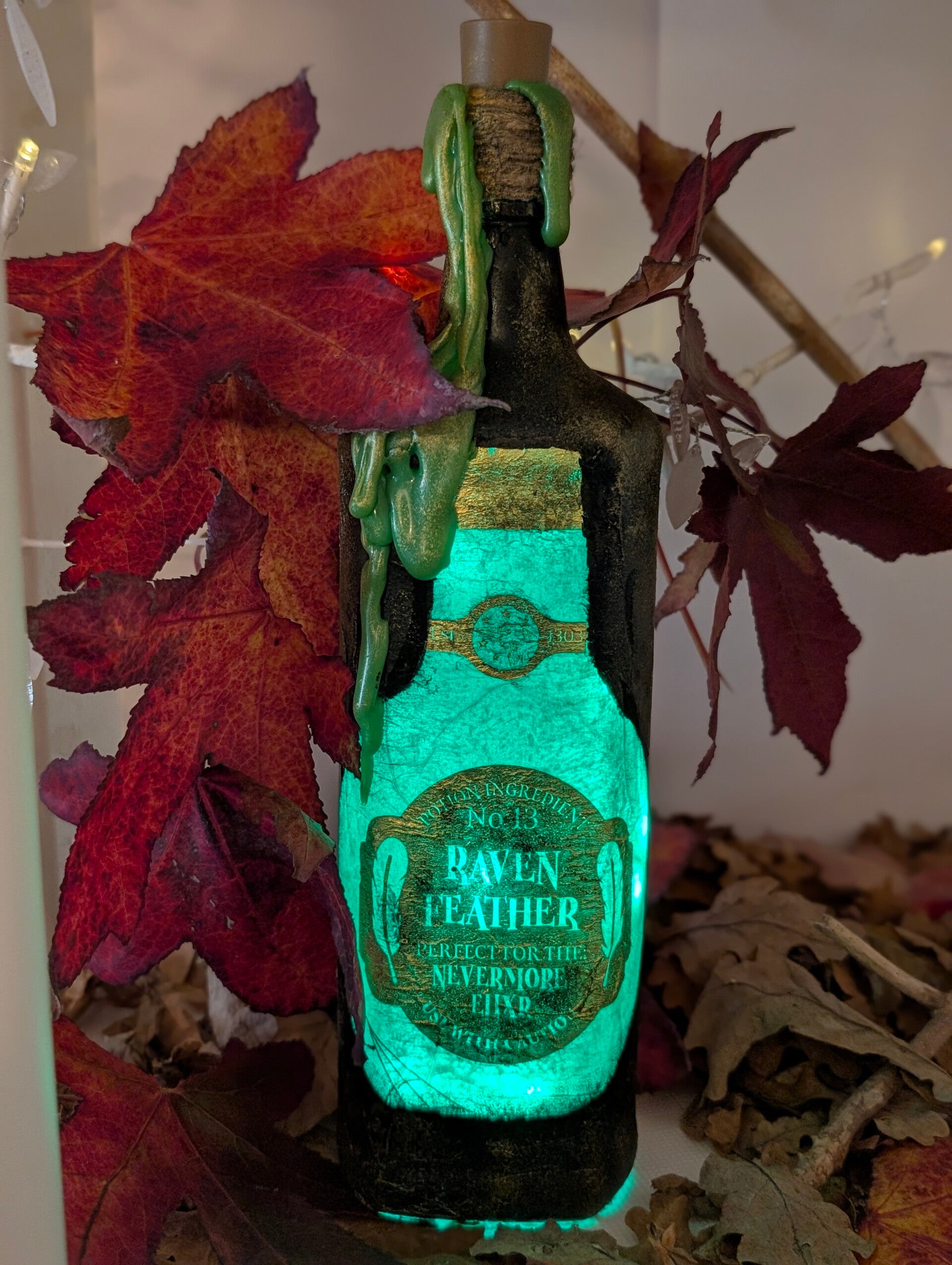 Raven Feather Potion Bottle Light: The Nevermore Elixir