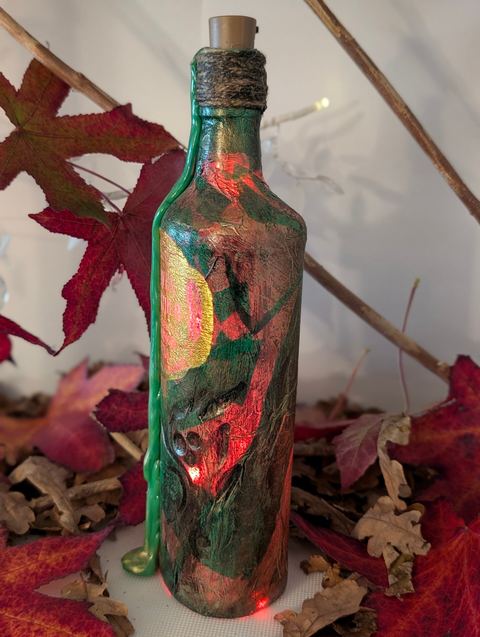 Sustainable Art: An eco-friendly art piece that transforms a simple glass bottle into a unique, functional work of fantasy decor.
