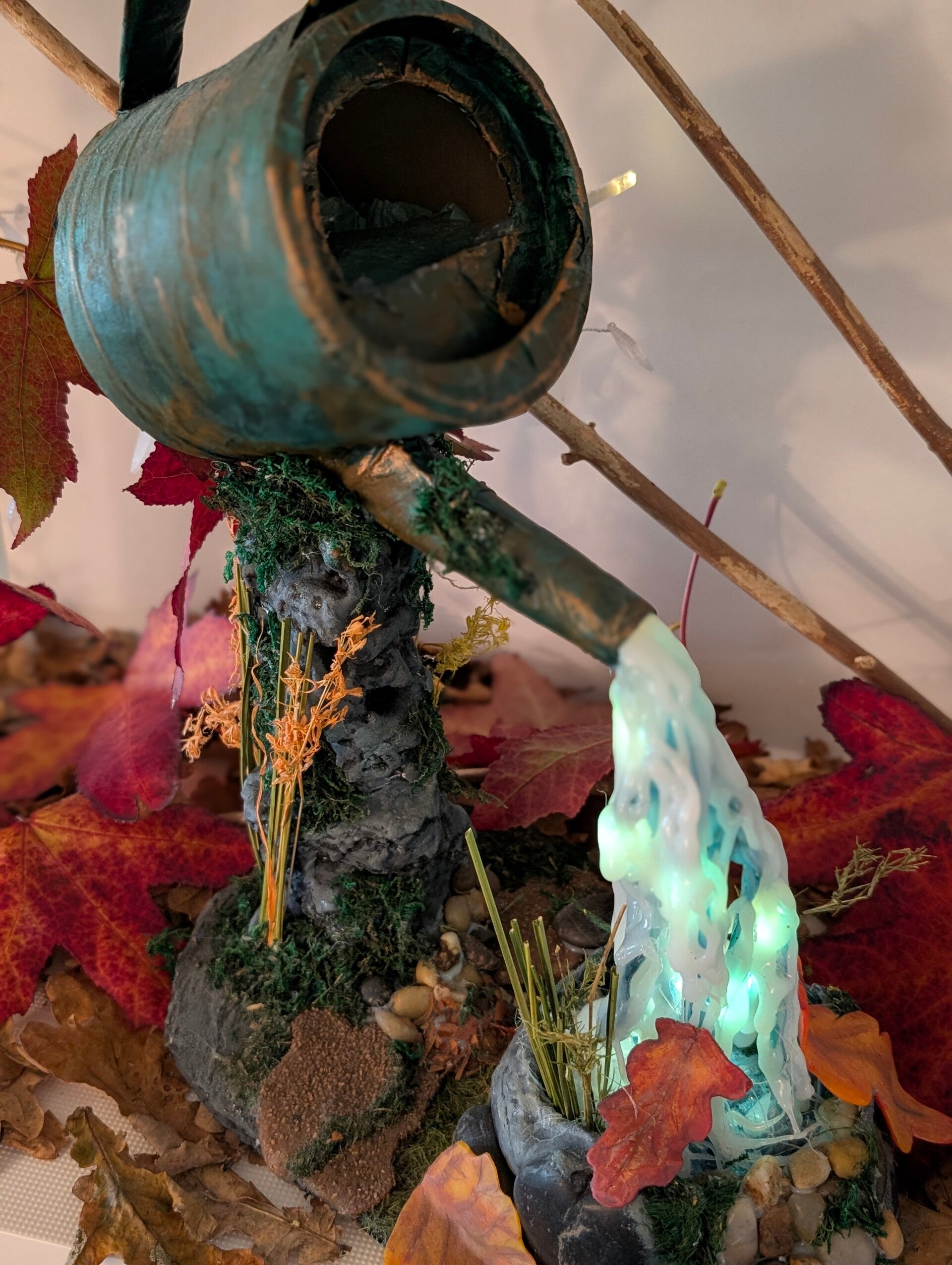 The Enchanted Watering Can: Mystic Waterfall LED Sculpture